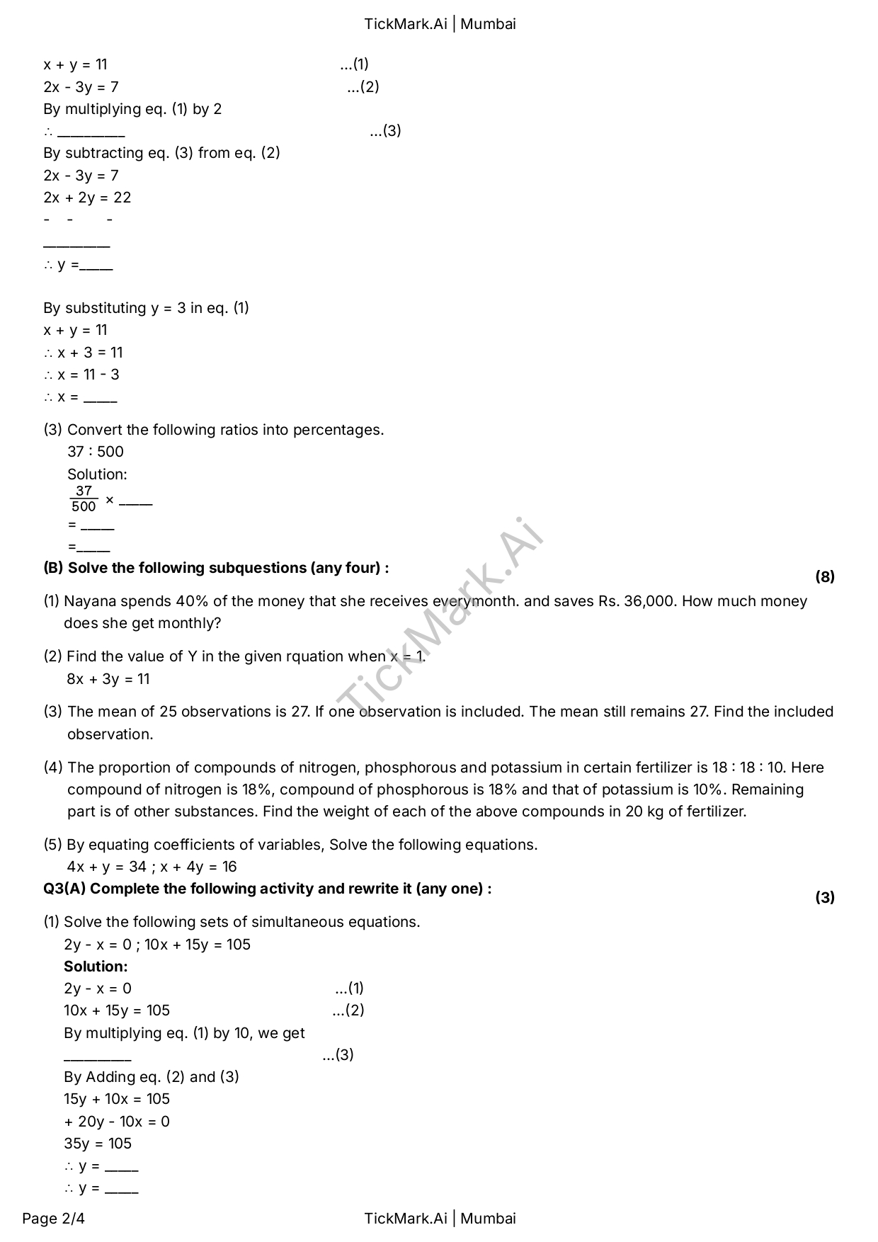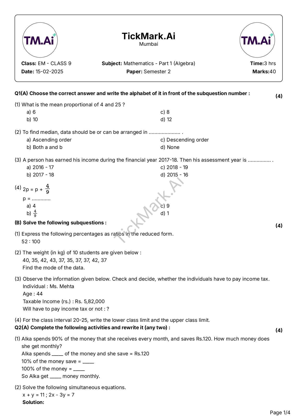 Download Free Algebra Semester 2 Q&A Paper For 9th Class Maharashtra Board By Archana 21/02/2026 Related Board Papers Download Free Science 2 Semester 2 Q&A Paper For 9th Class Maharashtra Board Download Free Question Paper Download Free Answer Paper Download Free Question... Read more Board Papers Download Free Hindi Unit Test 2 Q&A Paper For 9th Class Maharashtra Board Download Free Question Paper Download Free Answer Paper Download Free Question... Read more Board Papers Download Free English Semester 1 Q&A Paper For 9th Class Maharashtra Board Download Free Question Paper Download Free Answer Paper Download Free Question... Read more Algebra Download Free Algebra Semester 2 Q&A Paper For 9th Class Maharashtra Board Download Free Question Paper Download Free Answer Paper Download Free Question... Read more TickMark.Ai About Us Test Paper Generation Software for Teachers TickMark.Ai is a next-generation... Read more Share WhatsApp AlgebraBoard PapersClass 9Maharashtra Board Paper Views: 13 Download Free Question Paper Download Free Answer Paper Download Free Question Paper Download Free Answer Paper Previous articleAbout UsNext articleDownload Free English Semester 1 Q&A Paper For 9th Class Maharashtra Board