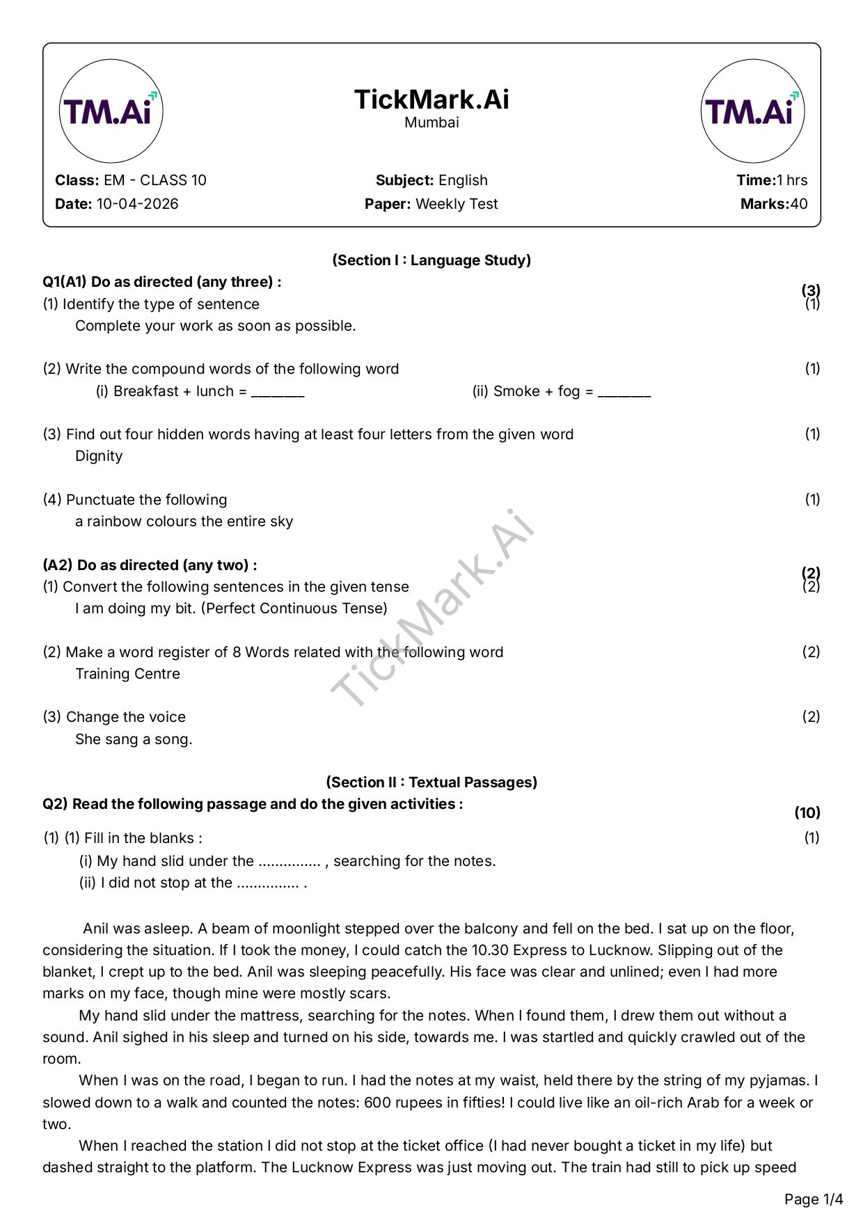 Download Free English CH1 & 2 Weekly Test Q&A Paper For 10th Class Maharashtra Board By Archana 09/04/2026 Related Class 10 Download Free History Class Test CH1 Q&A Paper For 10th Class Maharashtra Board Download Free Question Paper Download Free Answer Paper Download Free Question... Read more Class 10 Download Free Science – 1 Worksheet CH1 Q&A Paper For 10th Class Maharashtra Board Download Free Question Paper Download Free Answer Paper Download Free Question... Read more Class 10 Download Free Hindi CH1 Class Test Q&A Paper For 10th Class Maharashtra Board Download Free Question Paper Download Free Answer Paper Download Free Question... Read more Class 10 Download Free English CH1 & 2 Weekly Test Q&A Paper For 10th Class Maharashtra Board Download Free Question Paper Download Free Answer Paper Download Free Question... Read more Class 10 Download Free Geometry CH1 Worksheet For 10th Class Maharashtra Board Download Free Question Paper Download Free Answer Paper Download Free Question... Read more Share WhatsApp Class 10EnglishMaharashtra Board Paper Views: 59 Download Free Question Paper Download Free Answer Paper Download Free Question Paper Download Free Answer Paper Previous articleDownload Free Geometry CH1 Worksheet For 10th Class Maharashtra BoardNext articleDownload Free Hindi CH1 Class Test Q&A Paper For 10th Class Maharashtra Board
