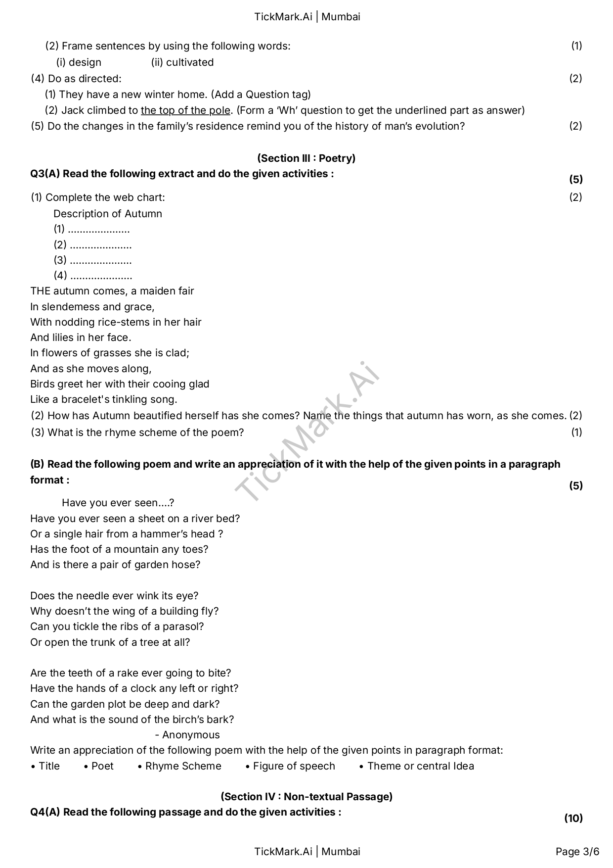 Download Free English Semester 1 Q&A Paper For 9th Class Maharashtra Board By Archana 21/02/2026 Related Board Papers Download Free Science 2 Semester 2 Q&A Paper For 9th Class Maharashtra Board Download Free Question Paper Download Free Answer Paper Download Free Question... Read more Board Papers Download Free Hindi Unit Test 2 Q&A Paper For 9th Class Maharashtra Board Download Free Question Paper Download Free Answer Paper Download Free Question... Read more Board Papers Download Free English Semester 1 Q&A Paper For 9th Class Maharashtra Board Download Free Question Paper Download Free Answer Paper Download Free Question... Read more Algebra Download Free Algebra Semester 2 Q&A Paper For 9th Class Maharashtra Board Download Free Question Paper Download Free Answer Paper Download Free Question... Read more TickMark.Ai About Us Test Paper Generation Software for Teachers TickMark.Ai is a next-generation... Read more Share WhatsApp Board PapersClass 9EnglishMaharashtra Board Paper Views: 13 Download Free Question Paper Download Free Answer Paper Download Free Question Paper Download Free Answer Paper Previous articleDownload Free Algebra Semester 2 Q&A Paper For 9th Class Maharashtra BoardNext articleDownload Free Hindi Unit Test 2 Q&A Paper For 9th Class Maharashtra Board