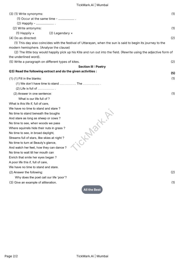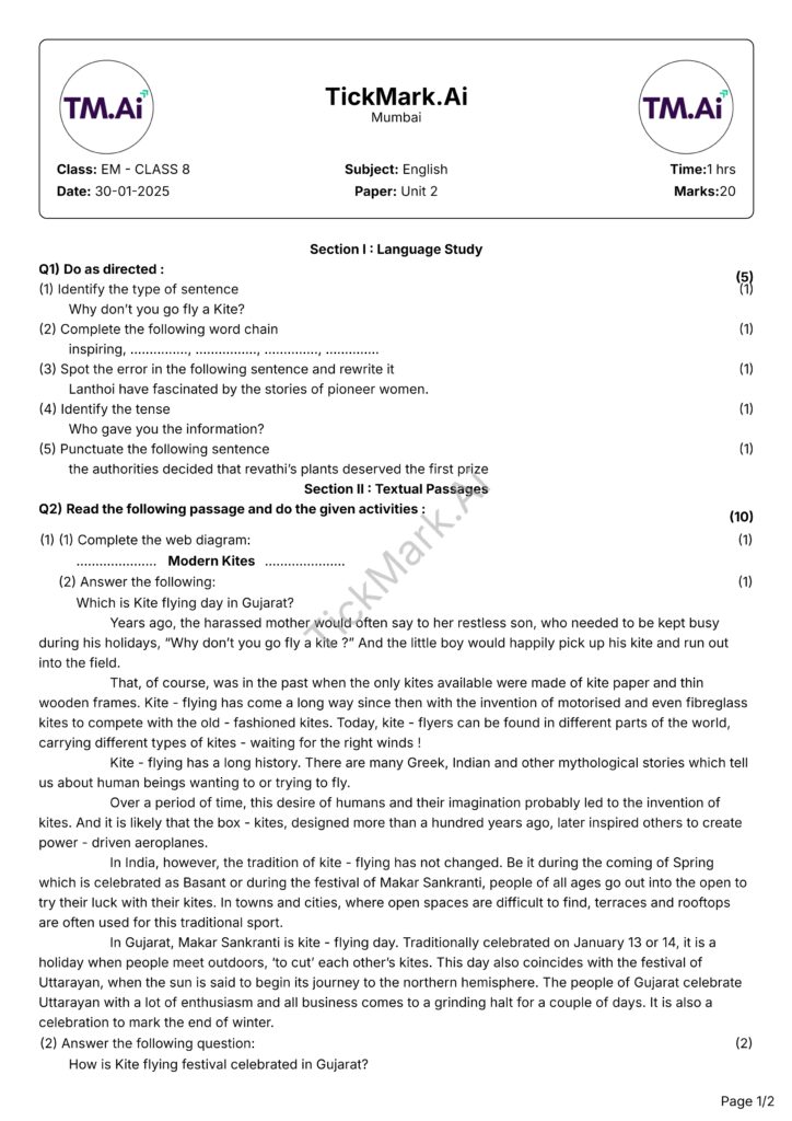 Download Free English Unit 2 Question Paper For 8th Class Maharashtra Board Explore Papers Class 9 Download Free Science 2 Unit 2 Question Paper For 9th Class Maharashtra Board Download Question Paper Download Answer Paper Download Question Paper Download Answer Paper Read more About TickMark The Future of Education: Algo-Powered Tools Like TickMark.Ai The education landscape is rapidly evolving, with technology playing... Read more Class 3 Download Free Marathi Unit 2 Test Paper For 3th Class Maharashtra Board Download Question Paper Download Answer Paper Read more Class 7 Download Free Unit Test 1 HIndi Question Paper For 7th Class Maharashtra Board Download Question Paper Download Answer Paper Read more Class 8 Download Free Maths Unit 2 Question Paper For 8th Class Maharashtra Board Download Question Paper Download Answer Paper Download Question Paper Download Answer Paper Read more Load more EnglishMaharashtra BoardClass 8Unit Test Download Question Paper Download Answer Paper Download Question Paper Download Answer Paper Previous articleDownload Free History and Political Science Unit 2 Question Paper For 9th Class Maharashtra BoardNext articleDownload Free Maths Unit 2 Question Paper For 8th Class Maharashtra Board