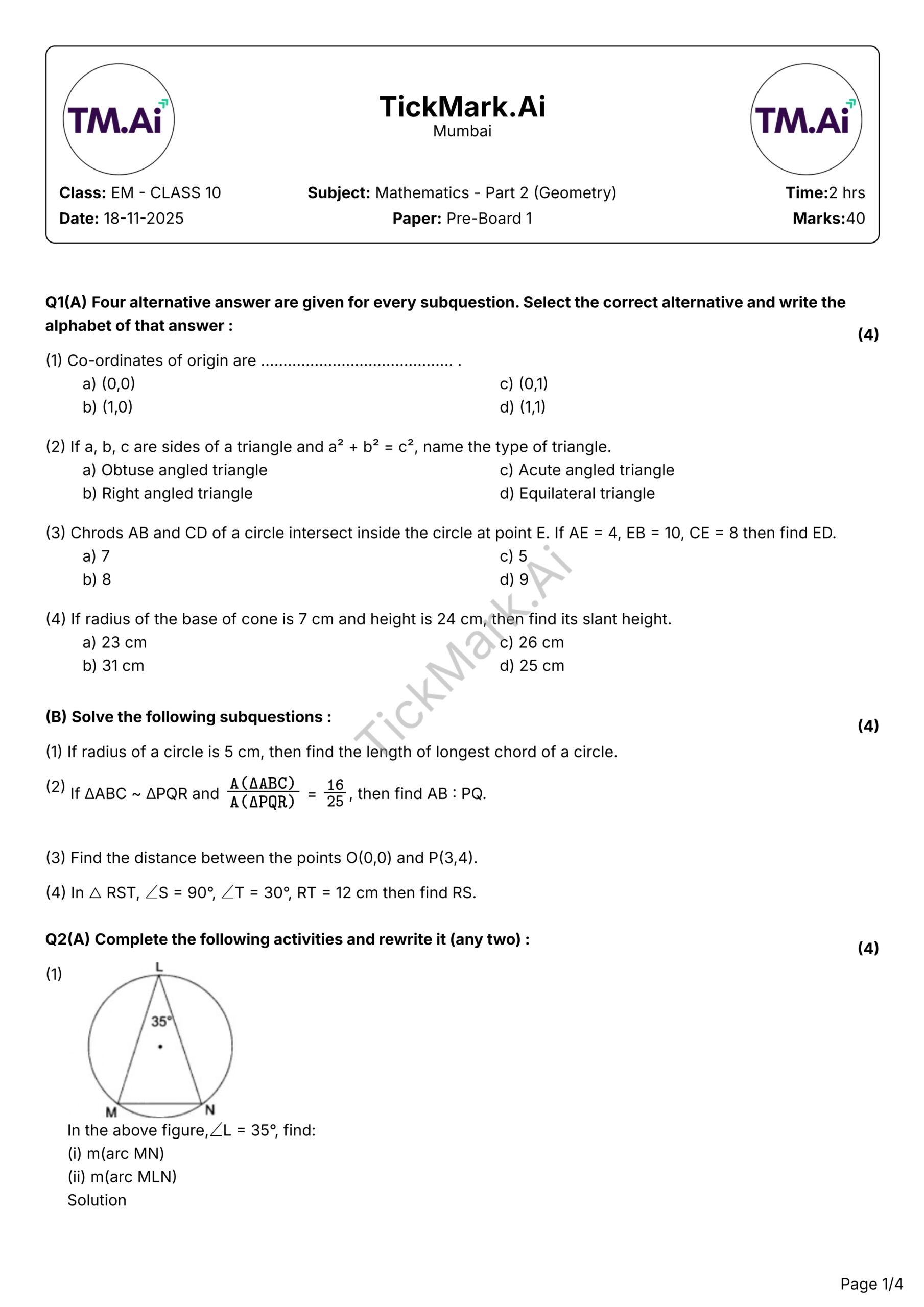 Download Free Geometry March 2023 Board Q&A Paper For 10th Class Maharashtra Board By TickMark.Ai 31/01/2026 Related Board Papers Download Free Hindi March 2025 Board Q&A Paper For 10th Class Maharashtra Board Download Free Question Paper Download Free Answer Paper Download Free Question... Read more Board Papers Download Free Geometry March 2023 Board Q&A Paper For 10th Class Maharashtra Board Download Free Question Paper Download Free Answer Paper Download Free Question... Read more Tech Contact Us We’re here to help you simplify exam paper creation. Whether... Read more Uncategorized Clients Read more Share WhatsApp Board PapersGeometryMaharashtra BoardMHB - Class 10 Paper Views: 65 Download Free Question Paper Download Free Answer Paper Download Free Question Paper Download Free Answer Paper Previous articleContact UsNext articleDownload Free Hindi March 2025 Board Q&A Paper For 10th Class Maharashtra Board