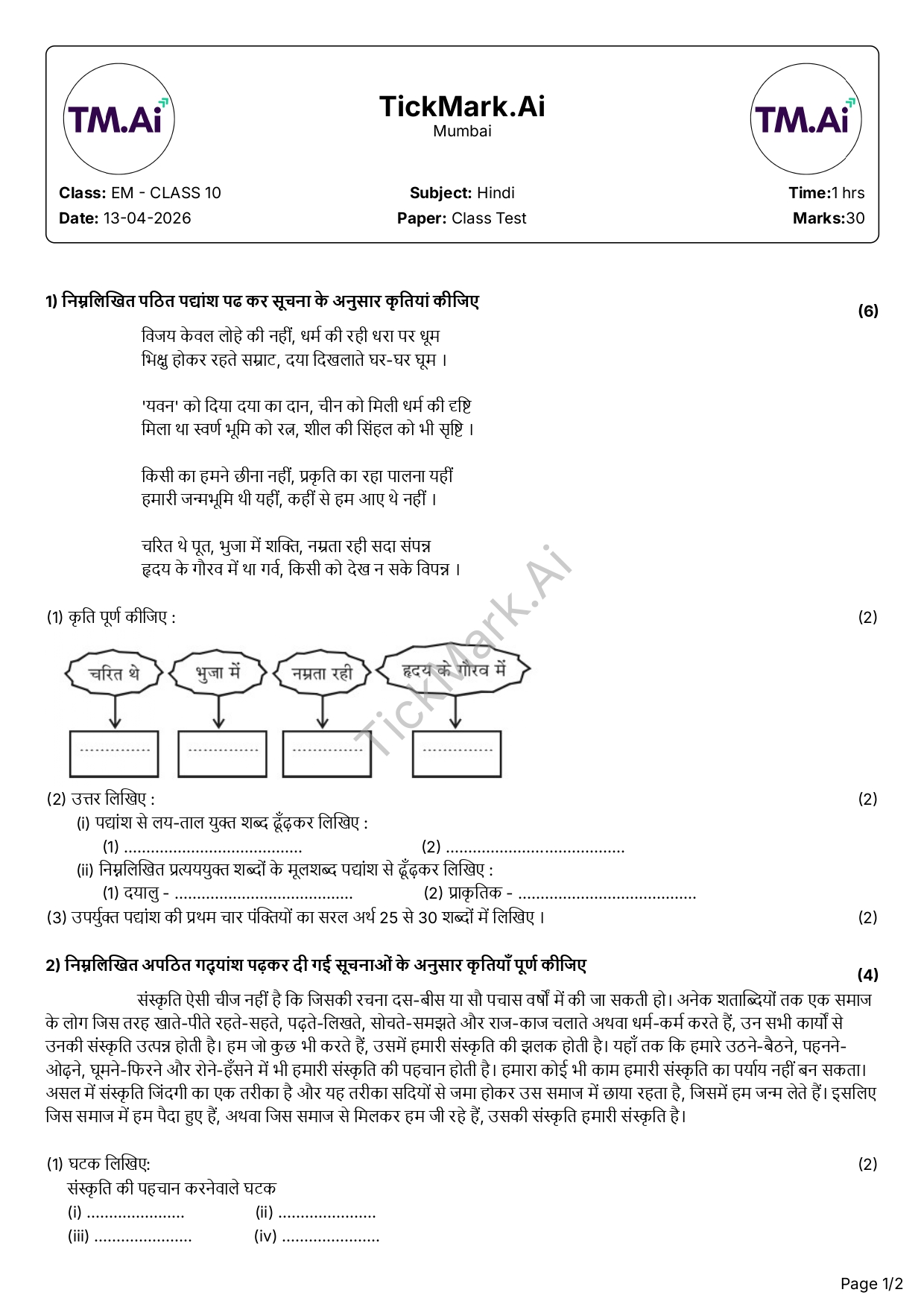 Download Free Hindi CH1 Class Test Q&A Paper For 10th Class Maharashtra Board By Archana 09/04/2026 Related Class 10 Download Free History Class Test CH1 Q&A Paper For 10th Class Maharashtra Board Download Free Question Paper Download Free Answer Paper Download Free Question... Read more Class 10 Download Free Science – 1 Worksheet CH1 Q&A Paper For 10th Class Maharashtra Board Download Free Question Paper Download Free Answer Paper Download Free Question... Read more Class 10 Download Free Hindi CH1 Class Test Q&A Paper For 10th Class Maharashtra Board Download Free Question Paper Download Free Answer Paper Download Free Question... Read more Class 10 Download Free English CH1 & 2 Weekly Test Q&A Paper For 10th Class Maharashtra Board Download Free Question Paper Download Free Answer Paper Download Free Question... Read more Class 10 Download Free Geometry CH1 Worksheet For 10th Class Maharashtra Board Download Free Question Paper Download Free Answer Paper Download Free Question... Read more Share WhatsApp Class 10HindiMaharashtra Board Paper Views: 40 Download Free Question Paper Download Free Answer Paper Download Free Question Paper Download Free Answer Paper Previous articleDownload Free English CH1 & 2 Weekly Test Q&A Paper For 10th Class Maharashtra BoardNext articleDownload Free Science – 1 Worksheet CH1 Q&A Paper For 10th Class Maharashtra Board