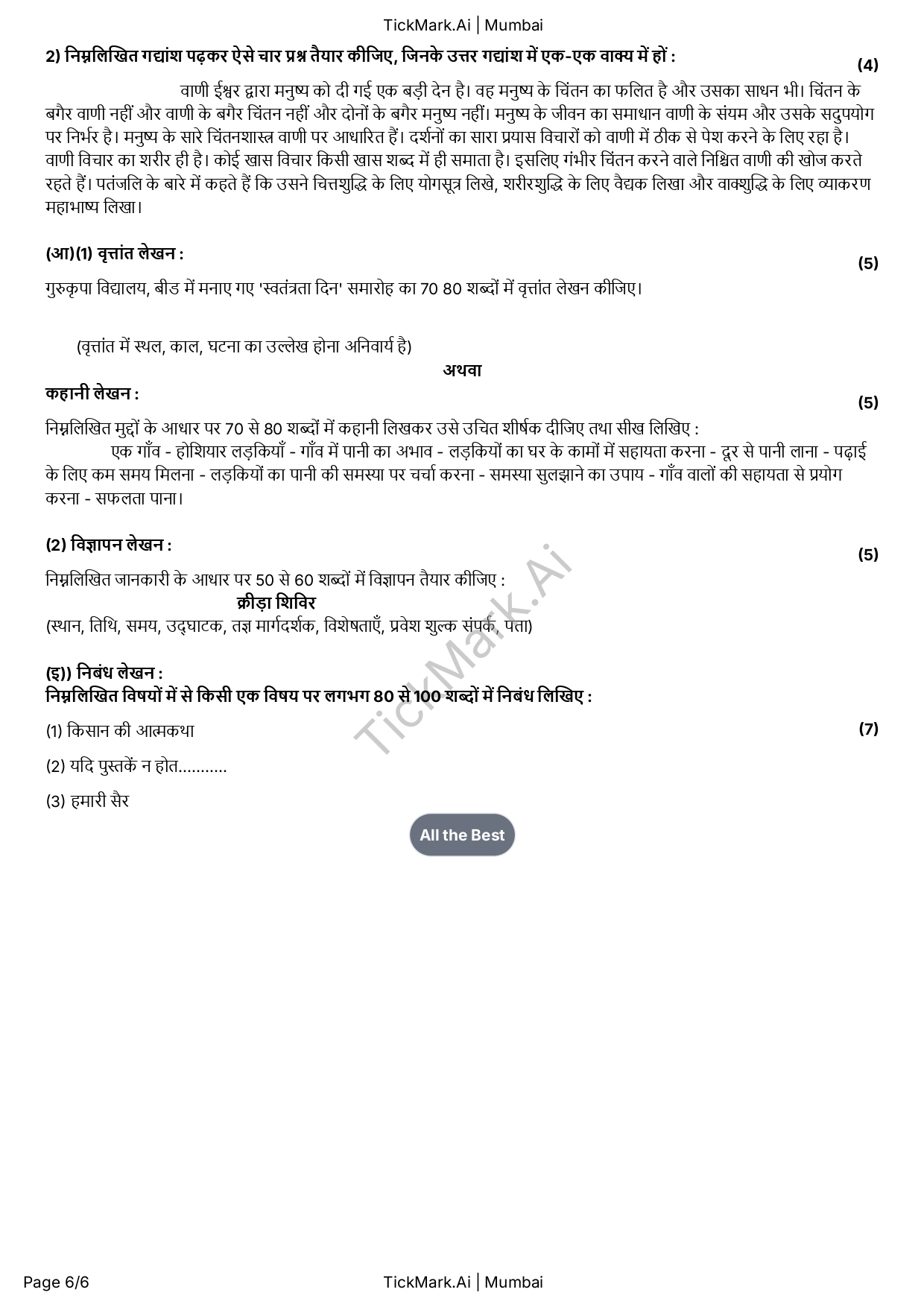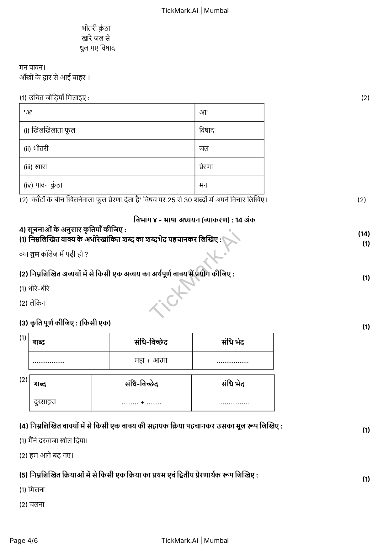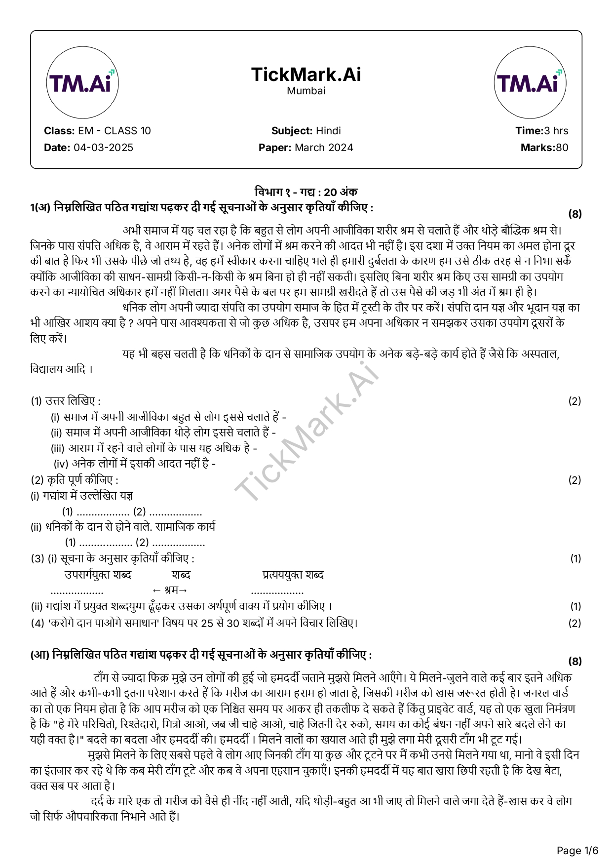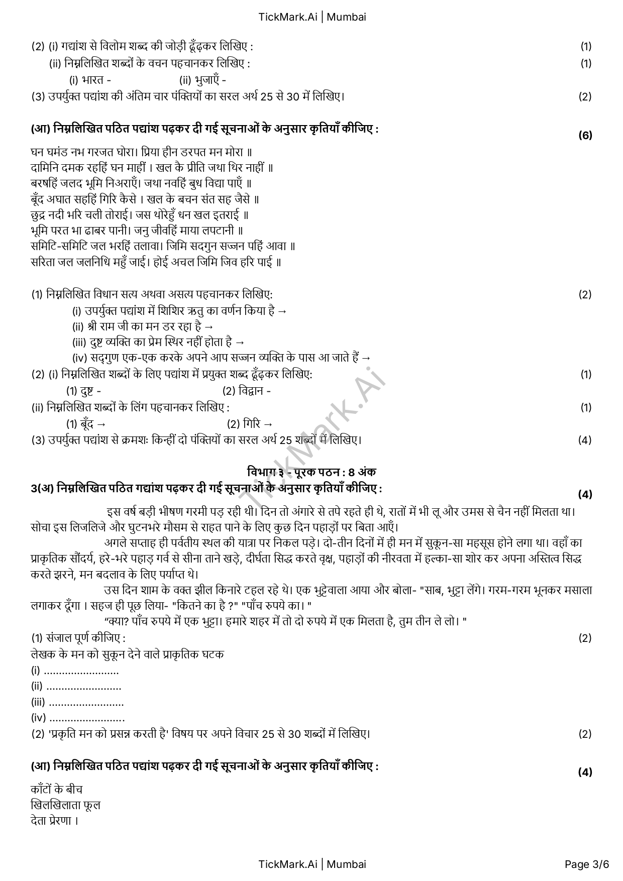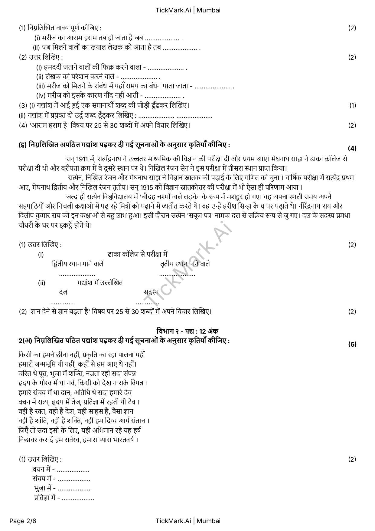 Download Free Hindi March 2024 Board Q&A Paper For 10th Class Maharashtra Board By Archana 21/02/2026 Related Board Papers Download Free Science 2 Semester 2 Q&A Paper For 9th Class Maharashtra Board Download Free Question Paper Download Free Answer Paper Download Free Question... Read more Board Papers Download Free Hindi Unit Test 2 Q&A Paper For 9th Class Maharashtra Board Download Free Question Paper Download Free Answer Paper Download Free Question... Read more Board Papers Download Free English Semester 1 Q&A Paper For 9th Class Maharashtra Board Download Free Question Paper Download Free Answer Paper Download Free Question... Read more Algebra Download Free Algebra Semester 2 Q&A Paper For 9th Class Maharashtra Board Download Free Question Paper Download Free Answer Paper Download Free Question... Read more TickMark.Ai About Us Test Paper Generation Software for Teachers TickMark.Ai is a next-generation... Read more Share WhatsApp Board PapersClass 10HindiMaharashtra Board Paper Views: 9 Download Free Question Paper Download Free Answer Paper Download Free Question Paper Download Free Answer Paper Previous articleDownload Free History and Political Science March 2024 Board Q&A Paper For 10th Class Maharashtra BoardNext articleDownload Free Marathi March 2024 Board Q&A Paper For 10th Class Maharashtra Board