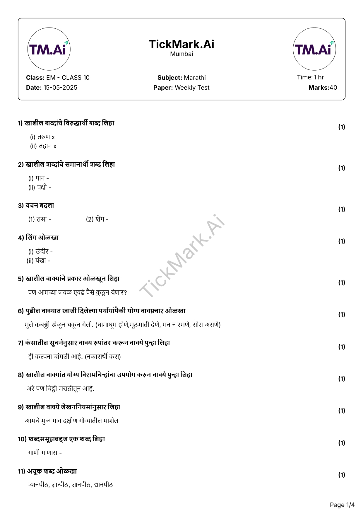 Download Free Marathi Grammar and Writing skills Q&A Paper For 10th Class Maharashtra Board By Archana 23/03/2026 Related Class 10 Download Free Geometry CH1 Worksheet For 10th Class Maharashtra Board Download Free Question Paper Download Free Answer Paper Download Free Question... Read more Class 10 Download Free Science 2 Class Test CH2 Q&A Paper For 10th Class Maharashtra Board Download Free Question Paper Download Free Answer Paper Download Free Question... Read more Class 10 Download Free Marathi Grammar and Writing skills Q&A Paper For 10th Class Maharashtra Board Download Free Question Paper Download Free Answer Paper Download Free Question... Read more Algebra Download Free Algebra Class Test CH2 Q&A Paper For 10th Class Maharashtra Board Download Free Question Paper Download Free Answer Paper Download Free Question... Read more Class 10 Download Free Geography CH2 Worksheet For 10th Class Maharashtra Board Download Free Question Paper Download Free Answer Paper Download Free Question... Read more Share WhatsApp Class 10Maharashtra BoardMarathi Paper Views: 16 Download Free Question Paper Download Free Answer Paper Download Free Question Paper Download Free Answer Paper Previous articleDownload Free Algebra Class Test CH2 Q&A Paper For 10th Class Maharashtra BoardNext articleDownload Free Science 2 Class Test CH2 Q&A Paper For 10th Class Maharashtra Board